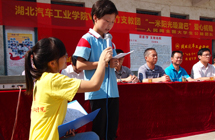 7月10日上午,湖北汽車工業(yè)學(xué)院“V益·青竹”暑期愛心支教團(tuán)的大學(xué)生們?cè)谑Y家堰鎮(zhèn)中原小學(xué)舉行愛心捐贈(zèng)活動(dòng)。湖北汽車工業(yè)學(xué)院副院長閔祖?zhèn)魍尽⒖h教育局副局長周躍忠同志以及相關(guān)領(lǐng)導(dǎo)都趕來支持。