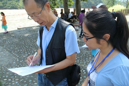 “綠色新生態(tài)”團(tuán)隊(duì)的成員來自四川農(nóng)業(yè)大學(xué)資源與環(huán)境學(xué)院,此次實(shí)踐的主題是“宣環(huán)保足探石棉縣,揚(yáng)生態(tài)共筑中國夢”。隊(duì)員們前往災(zāi)后重建縣城——雅安市石棉縣開始為期8天的征程:走訪石棉縣下屬各鄉(xiāng)鎮(zhèn),發(fā)放調(diào)查問卷,采訪相關(guān)政府部門,參觀革命紀(jì)念館等。雖然實(shí)踐進(jìn)展的不是一帆風(fēng)順,但隊(duì)員們?nèi)詧?jiān)持不懈,不斷反思自我。“今天的實(shí)踐帶給我最多的就是震撼和感動(dòng),在分發(fā)便利貼時(shí)遇到了很多困難,但克服這些困難之后會(huì)有一種深深的滿足感。飽含濃郁的紅色文化氛圍的安順是我們小隊(duì)宣傳‘中國夢’的絕佳之地,我們還要更加努力。”隊(duì)員胡瀚文在中國工農(nóng)紅軍強(qiáng)渡大渡河紀(jì)念館做環(huán)保宣傳時(shí)這樣告訴記者。另一位隊(duì)員郭瑀說:“能深入鄉(xiāng)村進(jìn)行面對面的了解對我來說是一個(gè)全新的經(jīng)歷,很新鮮也很有意義。雖然實(shí)踐的時(shí)候很累,但還是有一股力量支撐著自己堅(jiān)持下去,我們的成員們都很棒,相信我們能取得好的成果!