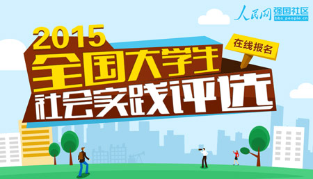 為勉勵(lì)廣大青年認(rèn)真學(xué)習(xí)習(xí)近平總書記關(guān)于弘揚(yáng)真善美、傳播正能量的講話精神,引導(dǎo)大學(xué)生積極參與社會(huì)實(shí)踐,在志愿服務(wù)過(guò)程中得到鍛煉、獲得成長(zhǎng),人民網(wǎng)將舉辦“‘強(qiáng)國(guó)杯’2015全國(guó)大學(xué)生社會(huì)實(shí)踐評(píng)選”活動(dòng);顒(dòng)通過(guò)展示和評(píng)選的過(guò)程,講述社會(huì)實(shí)踐故事,宣傳優(yōu)秀團(tuán)隊(duì)。現(xiàn)將有關(guān)事宜通知如下: