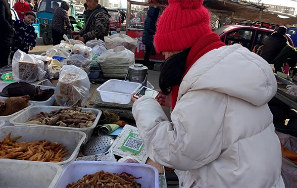 “小伙子,手機(jī)帶了嗎?掃一掃,你就用微信付款吧!”這是攤販大爺?shù)穆曇。江蘇徐州市豐縣的“閆家小旭”對家鄉(xiāng)集市上菜攤前的二維碼,頗為吃驚,不敢相信。她說:“不到一年時間,發(fā)現(xiàn)家鄉(xiāng)變化真得好大。中國特色社會主義‘走進(jìn)新時代’,農(nóng)村里的樓房越蓋越高,院子也越來越寬敞。鄉(xiāng)間小道變成平整寬闊的水泥路,飛奔的火車也通往家鄉(xiāng)。手機(jī)支付走進(jìn)鄉(xiāng)間集市攤販,西紅柿、茄子、黃瓜、豆角等反季節(jié)蔬菜也成為春節(jié)餐桌上的家常菜。”