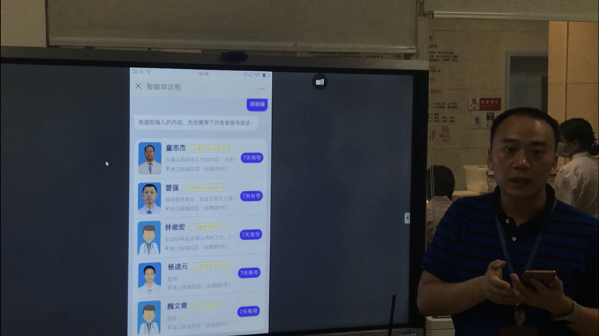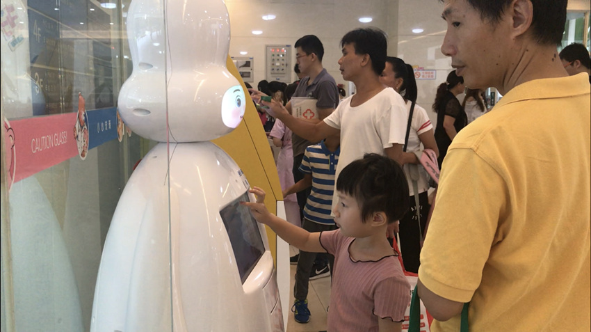 在廣州市婦女兒童醫(yī)療中心,與手機(jī)客戶端同步的導(dǎo)診機(jī)器人“咪姆熊”,還幫助患者導(dǎo)航至醫(yī)院的每個(gè)位置;根據(jù)指令,物流機(jī)器人“諾亞”可以自行乘坐電梯,將醫(yī)護(hù)人員所需藥品送達(dá)指定科室;新一代AI平臺(tái)能讀X光片和超聲數(shù)據(jù),還能在30秒內(nèi)診斷出2種眼科疾病......