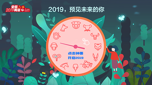 打開人民網兩會專題,便可看見“萬紅叢中一點綠”,這一抹“綠”便是特別策劃“2019兩會,預見未來”。該策劃的封面設計不僅呼應主題,且頗具神秘感,時間元素貫穿全部場景。