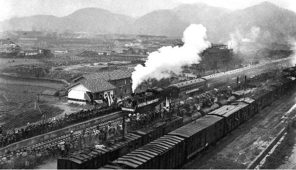 1978年,火車首次進(jìn)入湘西州州府吉首,一輛冒著滾滾白煙的蒸汽火車在城區(qū)穿行,鐵路兩旁站滿了揮舞著花束的人群。新華社記者 唐克立攝