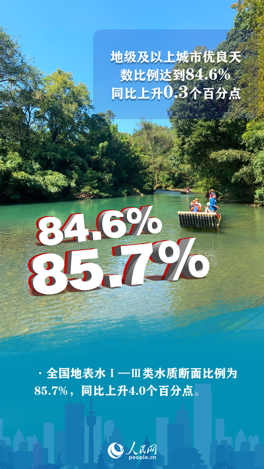 推進(jìn)重大工程實(shí)施。繼續(xù)加快實(shí)施“十四五”規(guī)劃102項(xiàng)重大工程中大氣、水、土壤、固體廢物污染防治和核與輻射安全監(jiān)管等生態(tài)環(huán)境領(lǐng)域重大工程項(xiàng)目。今年上半年,全國生態(tài)環(huán)境質(zhì)量持續(xù)改善。其中,地級及以上城市優(yōu)良天數(shù)比例達(dá)到84.6%,同比上升0.3個百分點(diǎn)。全國地表水Ⅰ—Ⅲ類水質(zhì)斷面比例為85.7%,同比上升4.0個百分點(diǎn)。