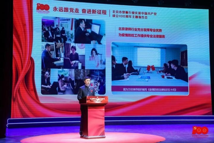 萬欣參加慶祝中國共產(chǎn)黨成立100周年主題報告會。司法部供圖