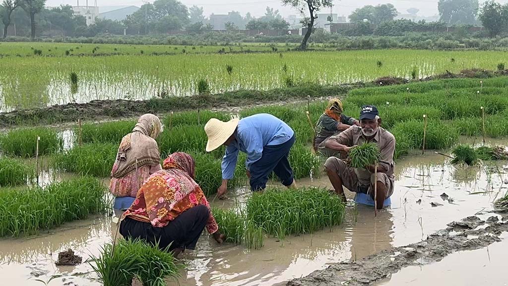 龍春久教授(中)與巴基斯坦當地農民在拉合爾隆平南亞種子研發(fā)中心試驗田里忙碌著。(人民網記者 周晶攝)